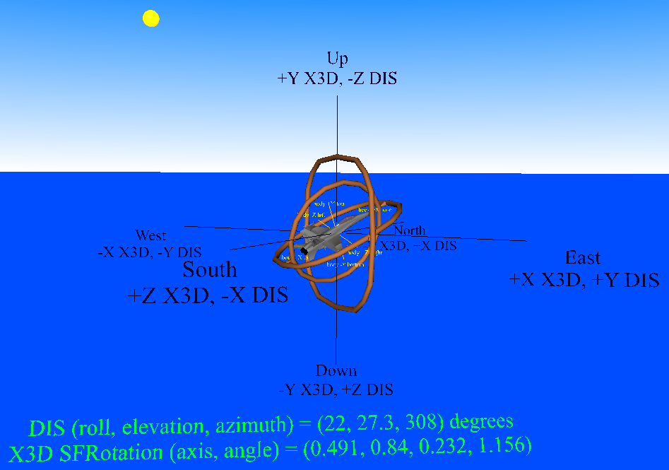 For example, one of the following is typically included in the X3D scenes found in the Web3D Consortium and NPS open-source example archives: