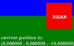 | 18 | <meta name='description' content='Test a single bound Viewpoint. A single Viewpoint node is present in this world. Because it is the first and only Viewpoint in this world, it should be bound to the top of the Viewpoint stack. As a result, the viewer should get a REAR view of a cubic geometry, with the word REAR appearing on the back face of the cube. In addition, Text at the bottom of the world should indicate the viewers position to be 0 0 -1 (behind the cube).'/> |