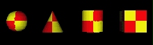 | description | Test browser ability to map full RGB color pixel values to geometry. A checkerboard of four colored squares: lower left (red), lower right (yellow), uppser left (yellow) and upper right (red) map onto the faces of all geometry. For the sphere, the texture should cover the entire surface, and wrap counterclockwise from the back of the sphere. For the cone, the texture should wrap counterclockwise (from above) starting at the back of the cone. A circle cutout of the texture is applied right side up to the base of the cone when the cone is tilted toward the -z axis. For the cylinder, the texture should wrap counterclockwise (from above) starting at the back of the cylinder. A circle cutout of the texture is applied right side up to the top and bottom caps of the cylinder. For the box, the texture should be applied right side up in its entirety to each face of the box. |