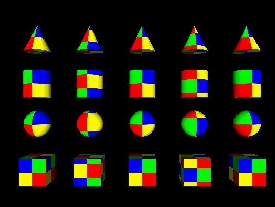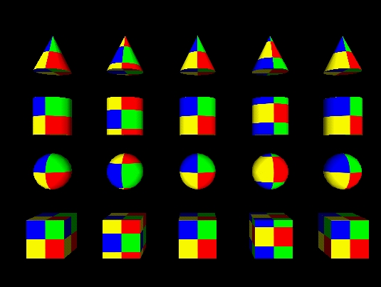 | 23 | <meta name='description' content='Test center field for primitive geometry applied with a PixelTexture. Test browser ability to apply a +90 degree rotation center of (left to right) 0 0, 0.33 0.33,0.5 0.5, 0.66 0.66 and 1 1 to a PixelTexture consisting of a square checkerboard of blue (lower left quadrant), yellow (lower right), red (upper right) and green (upper left) mapped to the faces of primitive geometry, using default primitive geometry mapping rules. The result is (moving counter-clockwise from the lower left corner of all geometry faces): Column #1 full height YELLOW, full height RED, full height GREEN, full height BLUE. Column #2 2/3 height BLUE, 2/3 height GREEN, full height RED, 1/3 height GREEN, 1/3 height BLUE, full height YELLOW Column #3 Same as Column #1 Column #4 1/3 height YELLOW, 1/3 height RED, full height GREEN, 2/3 height RED, 2/3 hight YELLOW, full height BLUE Column #5 Same as Column #1'/> |