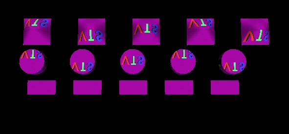 | 23 | <meta name='description' content='Test MovieTexture translation along t axis for complex geometry. Test browser ability to apply translations of (left to right) 0 -100.75, 0 -23.25, 0 0, 0 23.25, and 0 100.75 to a MovieTexture mapped to the faces of complex geometry, using default complex geometry mapping rules. The result is (for the bottom face of the ElevationGrid, the side and bottom end cap of the Extrusion, and the front of the IndexedFaceSet): The left column shows primitive geometry mapped with the VTS logo horizontally centered on these faces, with the VTS logo appearing at the bottom of all geometry faces. The second column shows a horizontally centered logo with the VTS logo at the top of all geometry faces. The third column shows a vertically and horizontally centered VTS logo on these faces. The fourth column should be identical to column #1. The fifth column should appear identical to column #2. Opposite geometry faces should show reversed mapping, and side faces for the IndexedFaceSet should show smeared end pixels of the front and back faces.'/> |