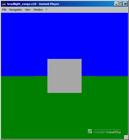 | 19 | <meta name='description' content='This is a test of the default state of the headlight field, and setting headlight to true and false. Initially the Box geometry should be illuminated, indicating that the default headlight value is true. Pressing the pointing device button while over the Box geometry in this world should toggle the headlight field value of the NavigationInfo node from true to false, turning off the headlight, and providing no illumination to the Box geometry. The Box geometry should appear black. Subsequent toggling of the headlight should turn it on and off.'/> |