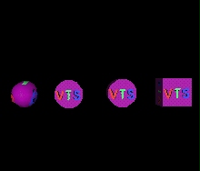 | description | Test mapping PNG ImageTexture to all primitive geometry. Test browser ability to map an RGB (24 bit color) and 8 bit "palette" on a purple background should map onto a sphere, cone, cylinder and box. The "palette" version of the ImageTexture is mapped to the Sphere and the Cone. The RGB 24 bit color ImageTexture is mapped to the Cylinder and Box. For the sphere the texture should cover the entire surface, and wrap counterclockwise from the back of the sphere. For the cone, the texture should wrap counterclockwise (from above) starting at the back of the cone. A circle cutout of the texture is applied right side up to the base of the cone when the cone is tilted toward the -z axis. For the cylinder, the texture should wrap counterclockwise (from above) starting at the back of the cylinder. A circle cutout of the texture is applied right side up to the top and bottom caps of the cylinder. For the box, the texture should be applied right side up in its entirety to each face of the box. |