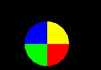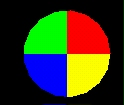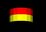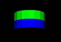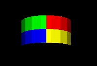Test default TextureTransform mapping of a PixelTexture to an Extrusion geometry. A PixelTexture consisting of a square checkerboard of blue (lower left quadrant), yellow (lower right), red (upper right) and green (upper left) is applied to an Extrusion by aligning the bottom of the PixelTexture with the first cross-section at the first spine point, and the top of the PixelTexture coincides with the last cross-section at the last spine point. The left side of the PixelTexture is aligned with the first cross-section point of all spine points (beginning on the far right side), and the right side of the PixelTexture coincides with the last cross-section point for all spine points (also on the far right side). For the ends of the extrusion, The PixelTexture will map with the +S (horizontal) texture axis aligning with the +X axis of the cap, and the +T (vertical) texture axis aligning with the +Z axis of the cap.