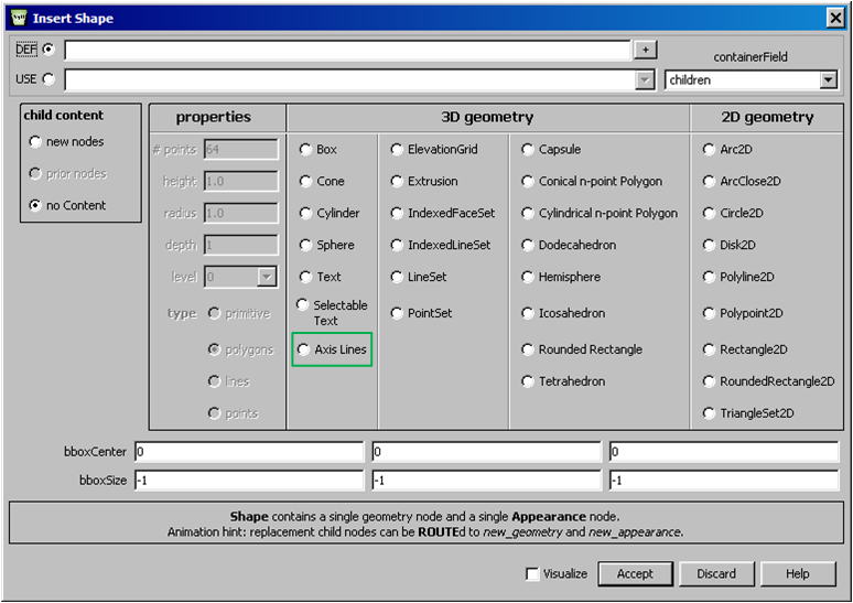 For additional help information about X3D scenes, please see X3D Tooltips, X3D Resources, and X3D Scene Authoring Hints.
